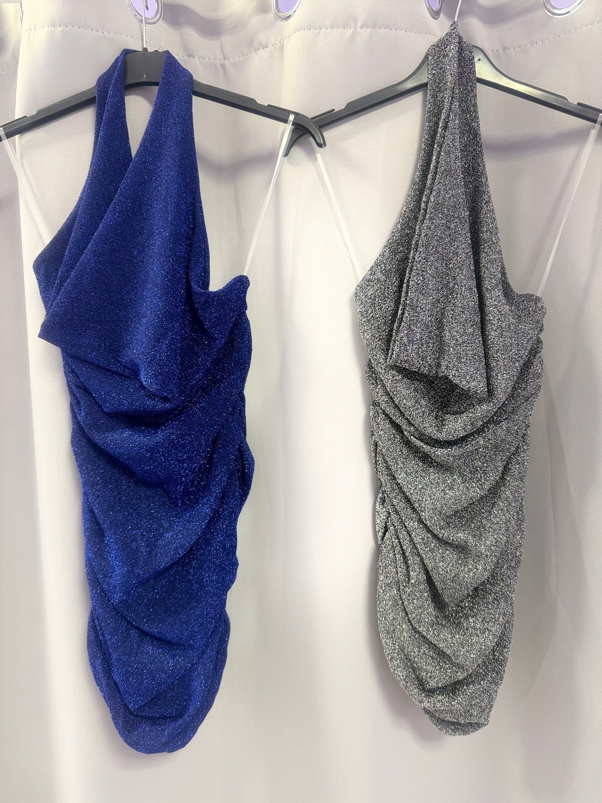 Vestito corto,aderente,schiena scoperta,chiusara dietro il collo con scollatura