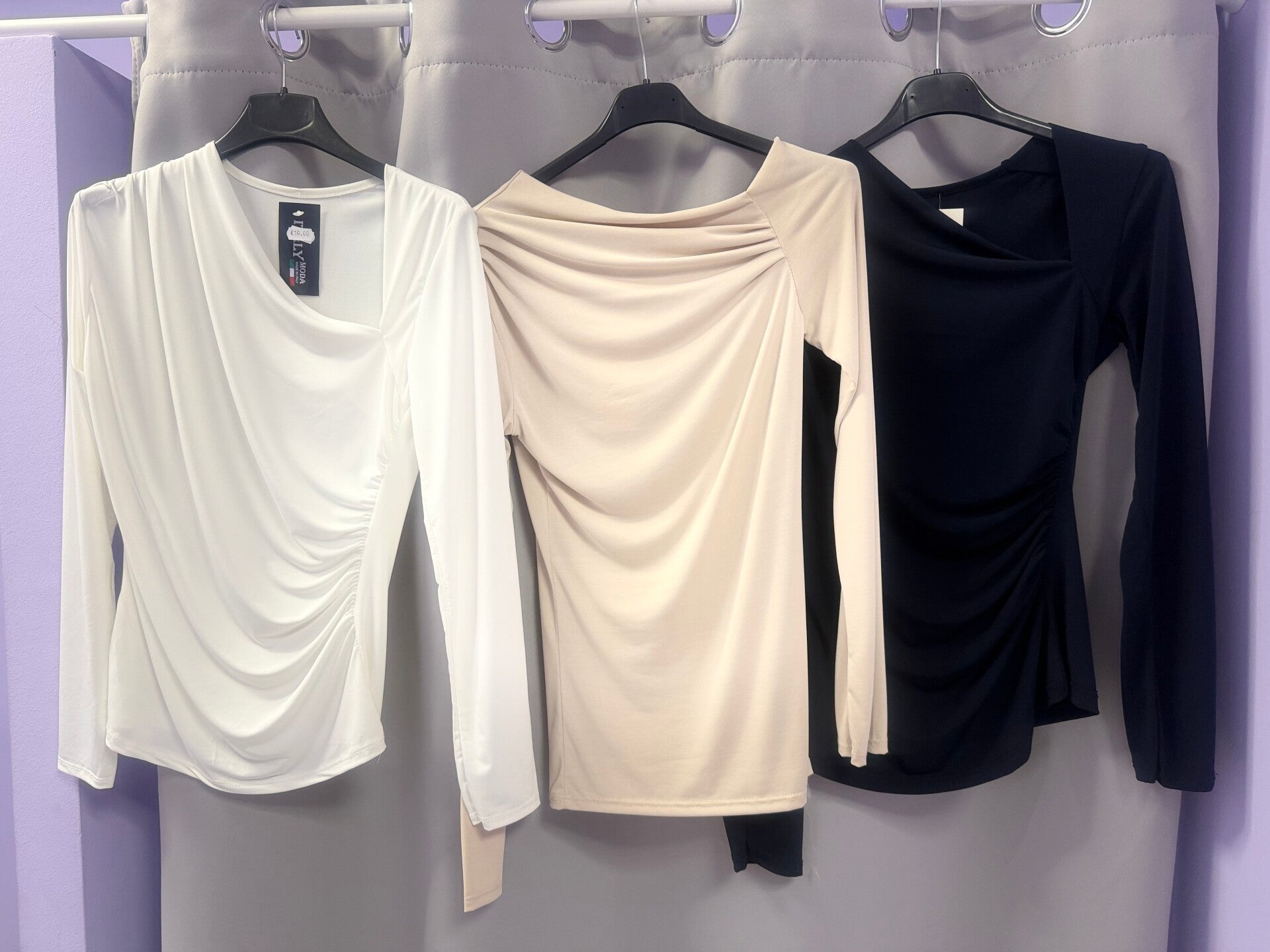 Maglia manica lunga,scollo laterale,taglia unica vestibilità slim